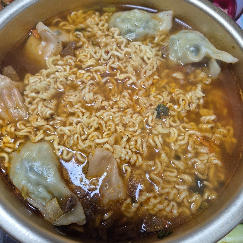 밥이 똑 떨어져서 만두라면 끓였어요.