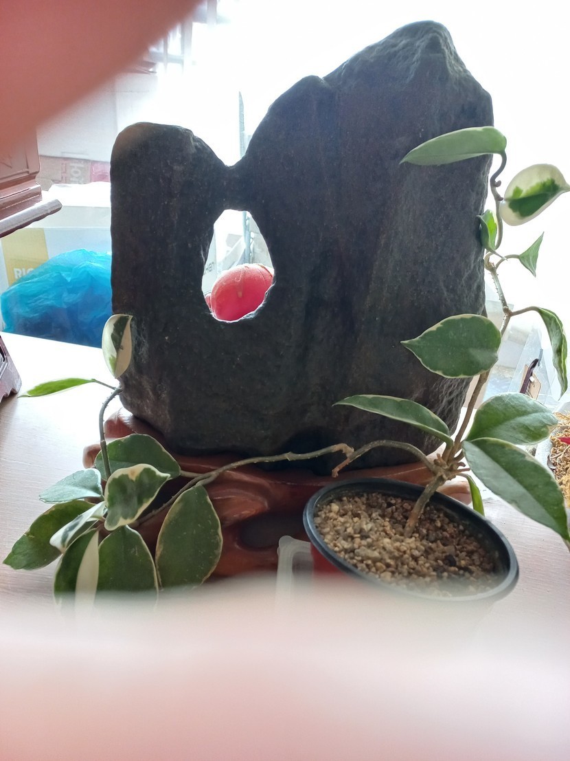 강원도 태백에서 수집한 바위에 구멍 뚫린 수석임다.
