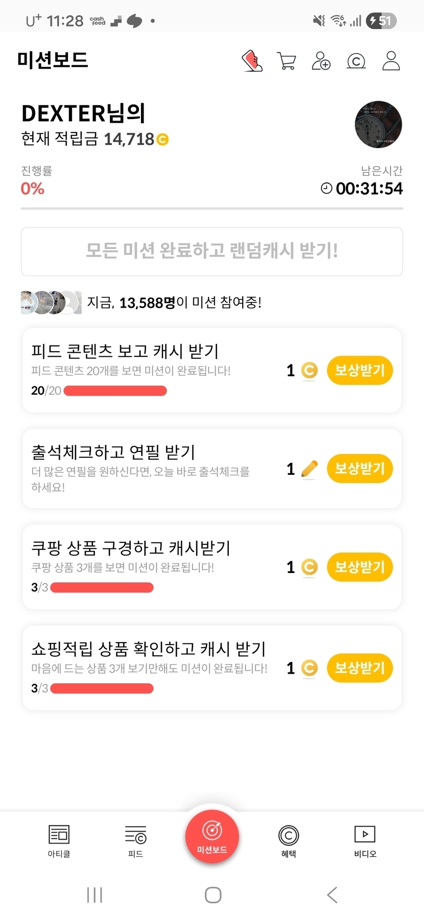 미션보드 클리어