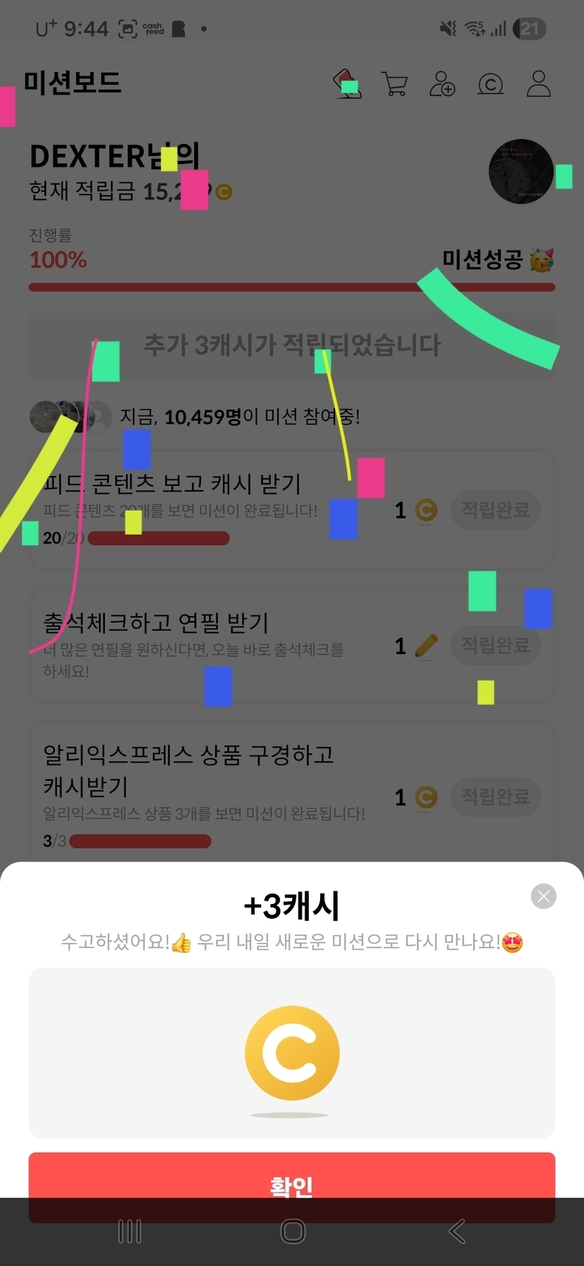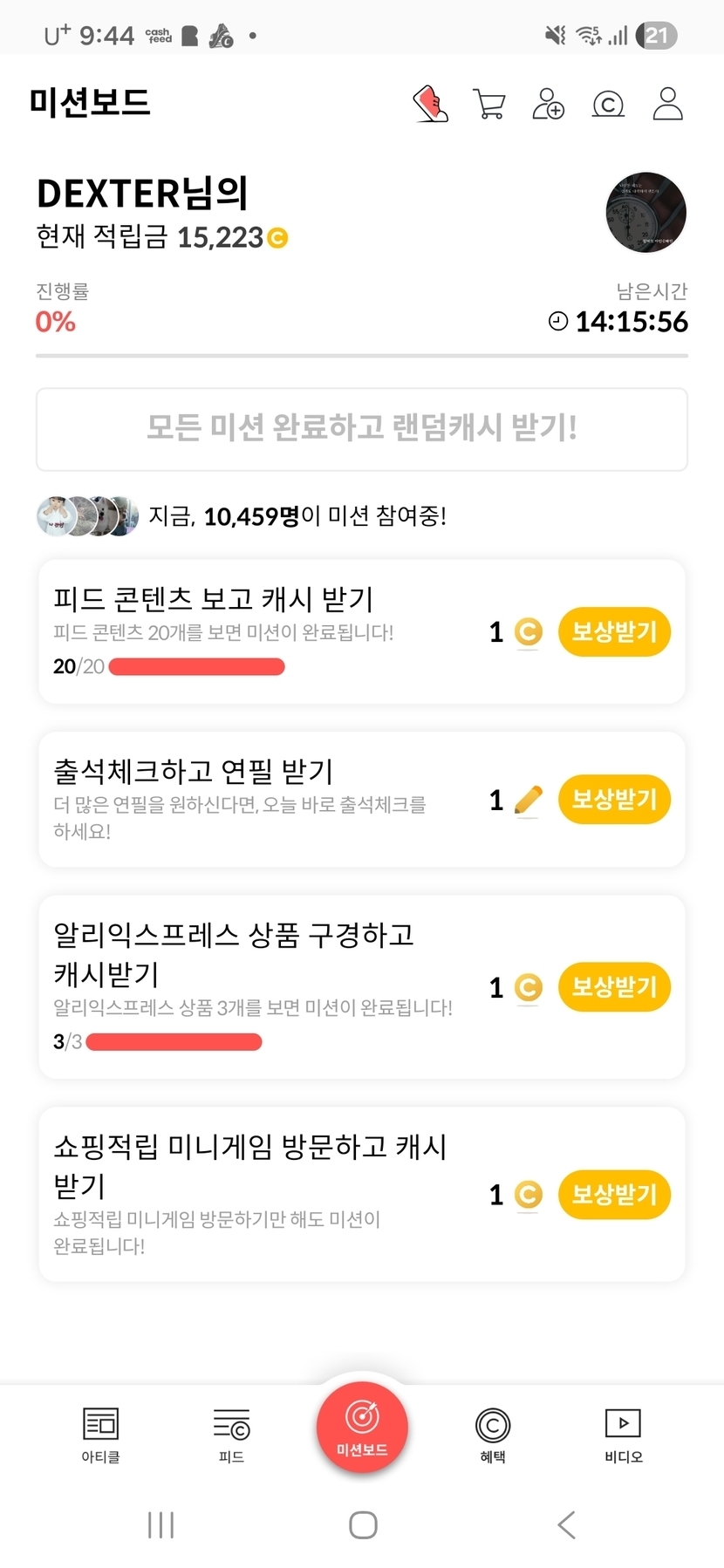 미션보드 클리어
