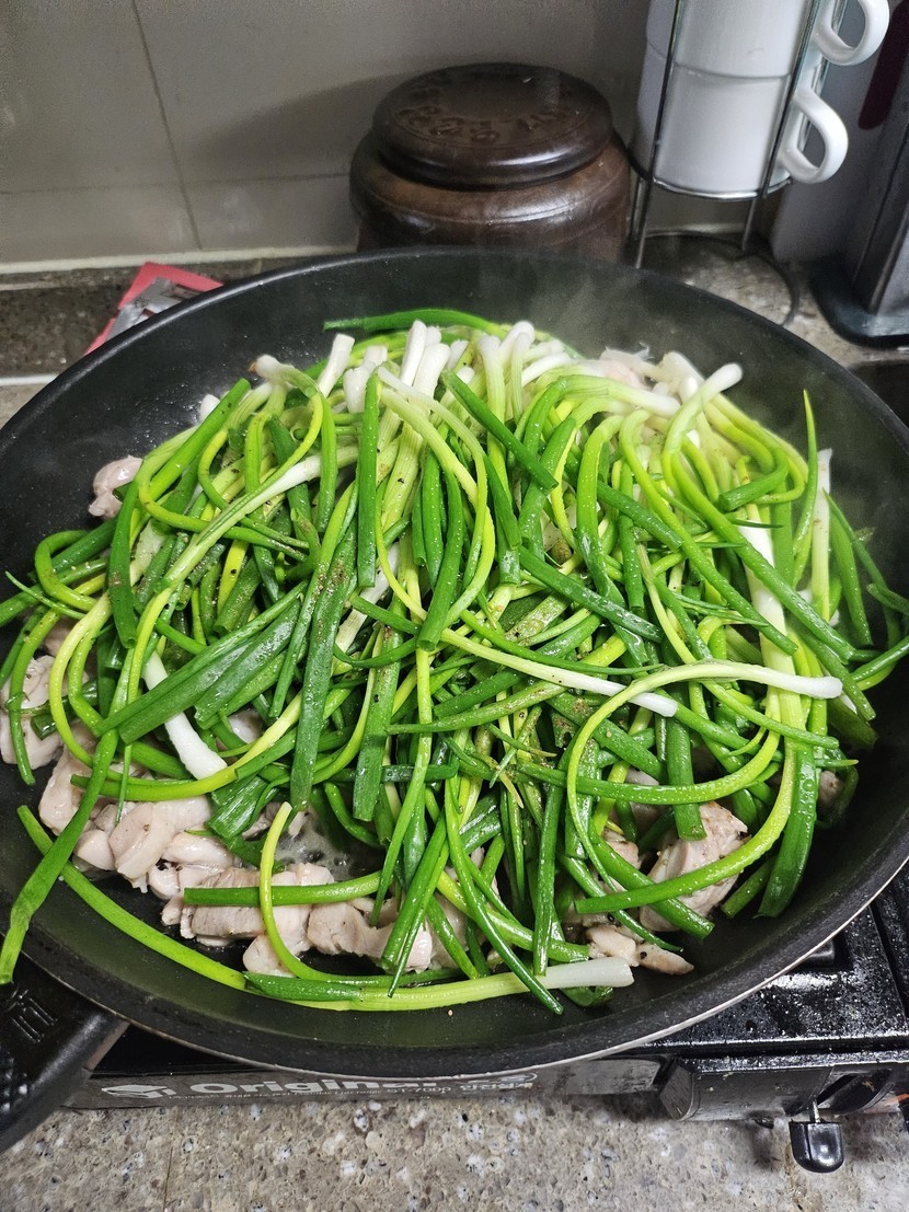우와~ 언니가준 쪽파 닭고기랑 ~