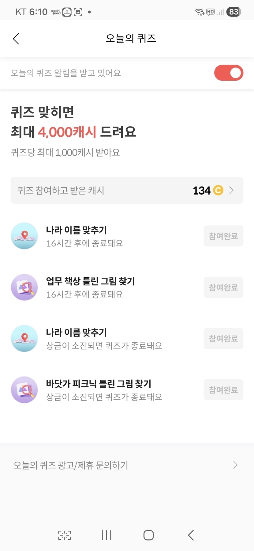 오늘의 퀴즈 완료