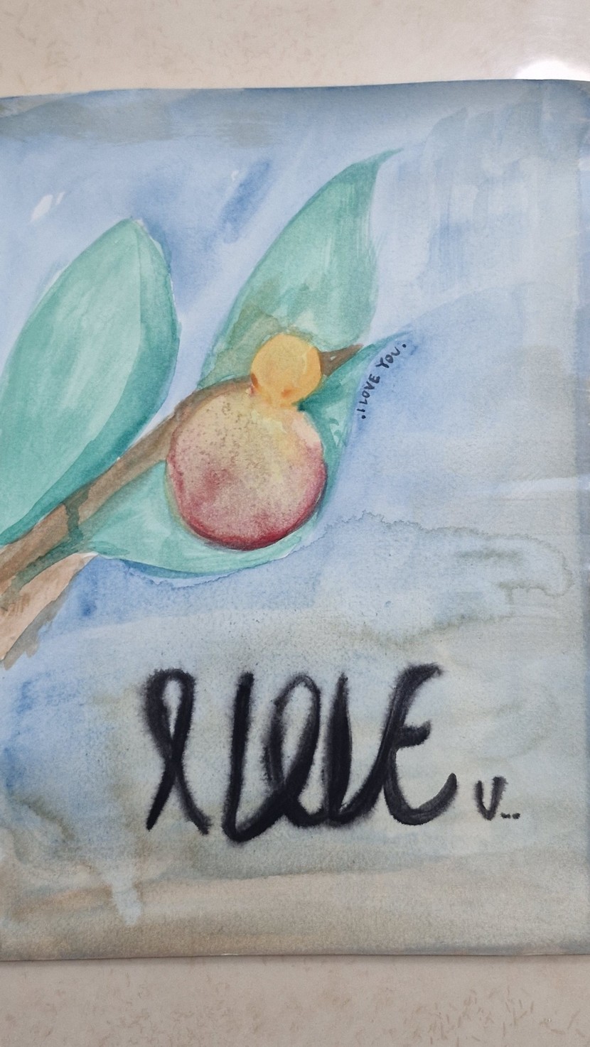 그나마 물감으로 그림을 그릴 땐 제목이 "I Love You", "늘 행복만 가득하길"이예요.