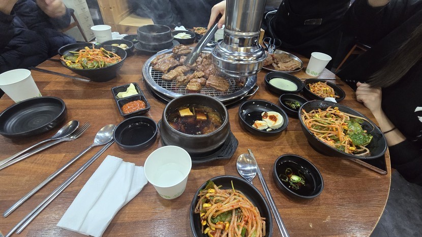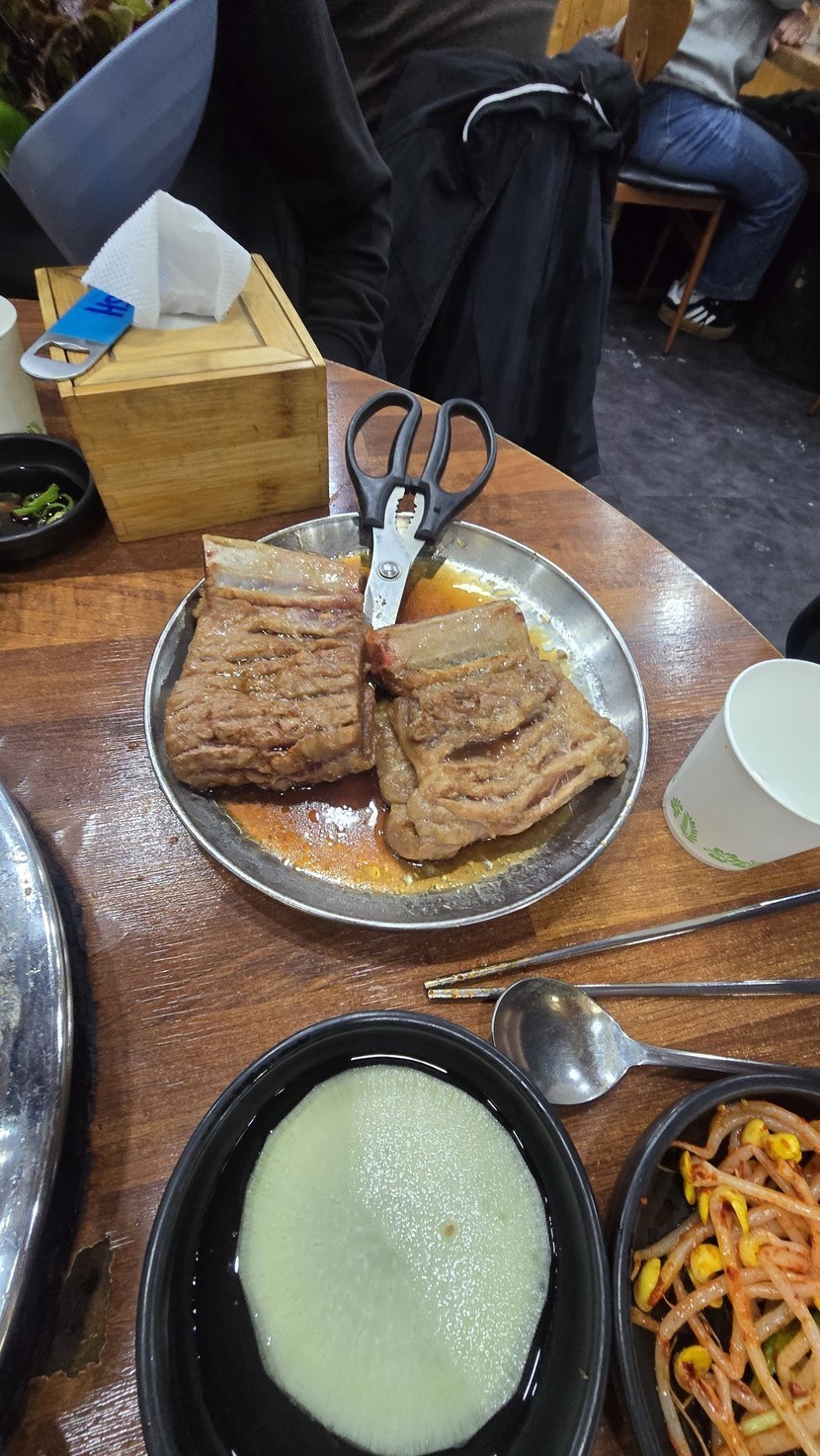 외손주와 갈비 먹기. 이젠 컸다고 고기도 잘 먹네