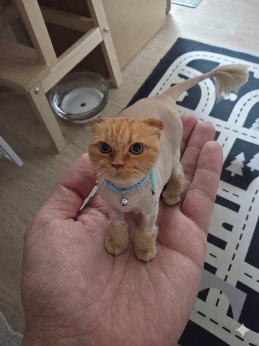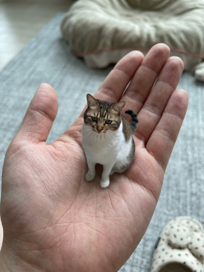 5일 전 235 읽음 재미있는 ai놀이~~ 설기시루초코 구독하기 10 27 콘텐츠의 수익 12 ai에게'이 사진의 고양이를 포켓사이즈 로 만들어서 손바닥 위에 서있게해줘 위에서 바라보는 각도로 해줘 고양이의 눈코입 배열과 배치는 건드리지말고 얼굴형과 표정, 눈동 자크기는 변화없게해줘'라고 하면 됩니당~~ 27 0 / 300 입력