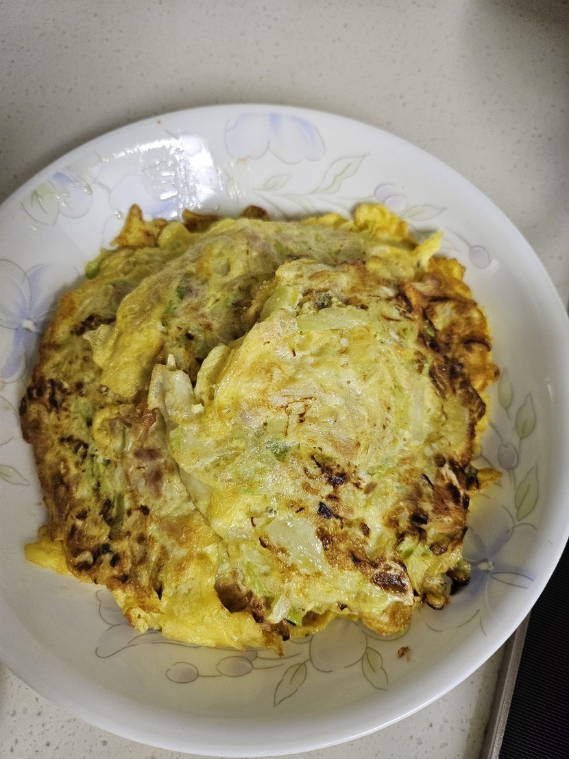 계란 푼거에 양배추채랑 참치넣어서 전처럼 부치고