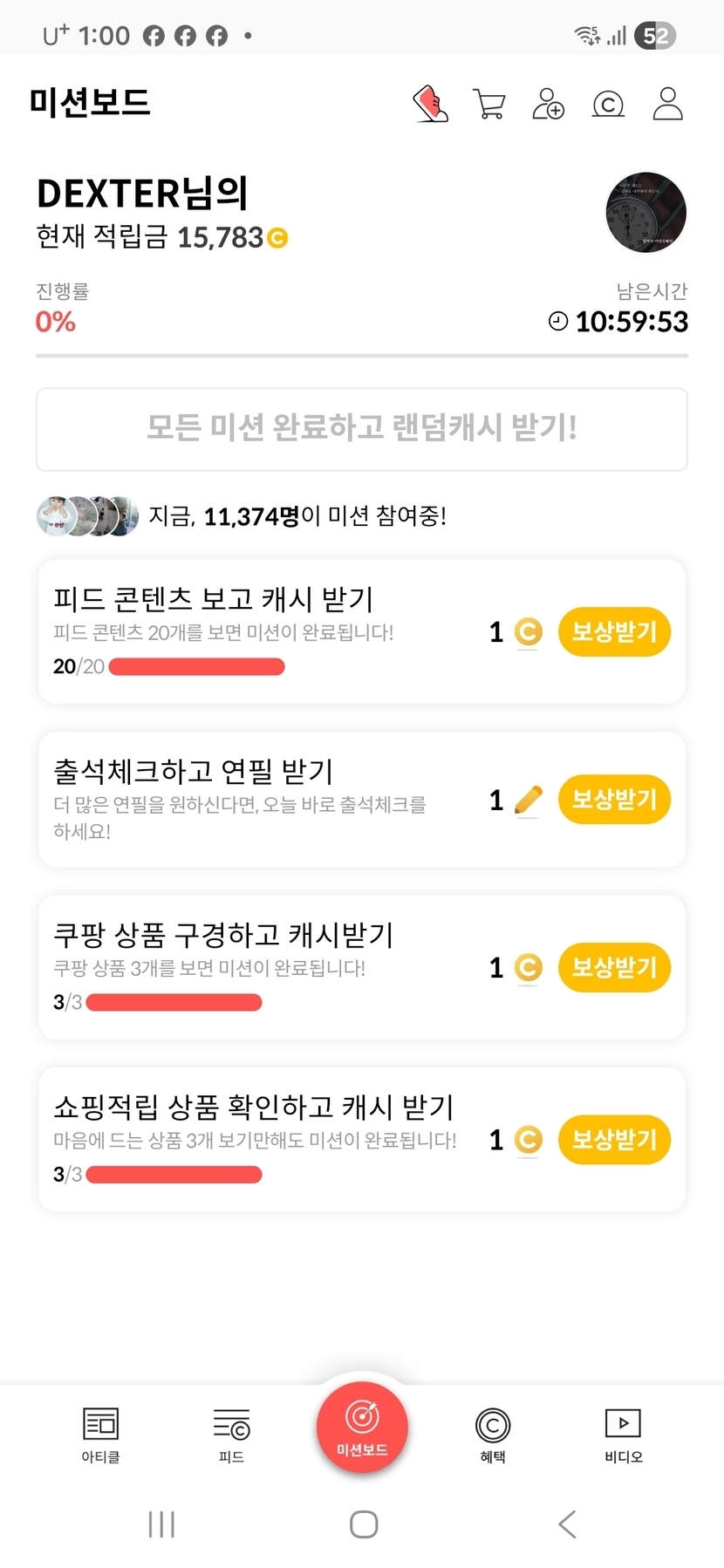미션보드 클리어
