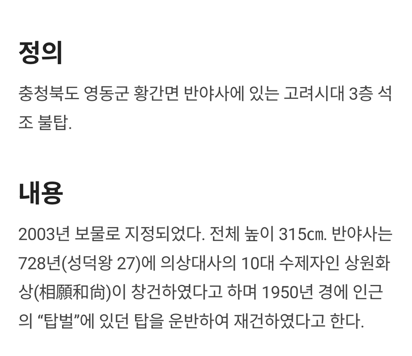 보물 1371호 영동 반야사 삼층석탑
