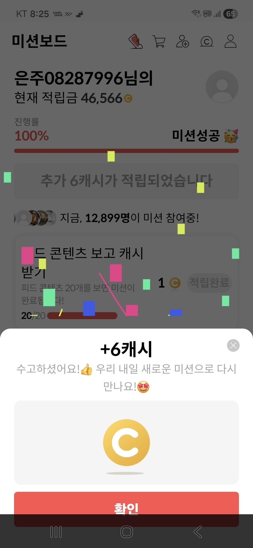 6캐시 받았어요