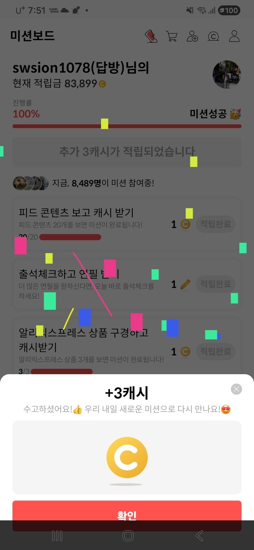 2일 전 87 읽음 랜덤캐시,미션보드 미션완료!! swsion1078(답방) 구독하기 11 11 콘텐츠의 수익 2 4월1일 랜덤캐시 미션완료 5캐시, 미션보드 미션완료 3캐시, 타로카드는 2캐시, 비디오시청은 3캐시 받았어요. 11 0 / 300 입력