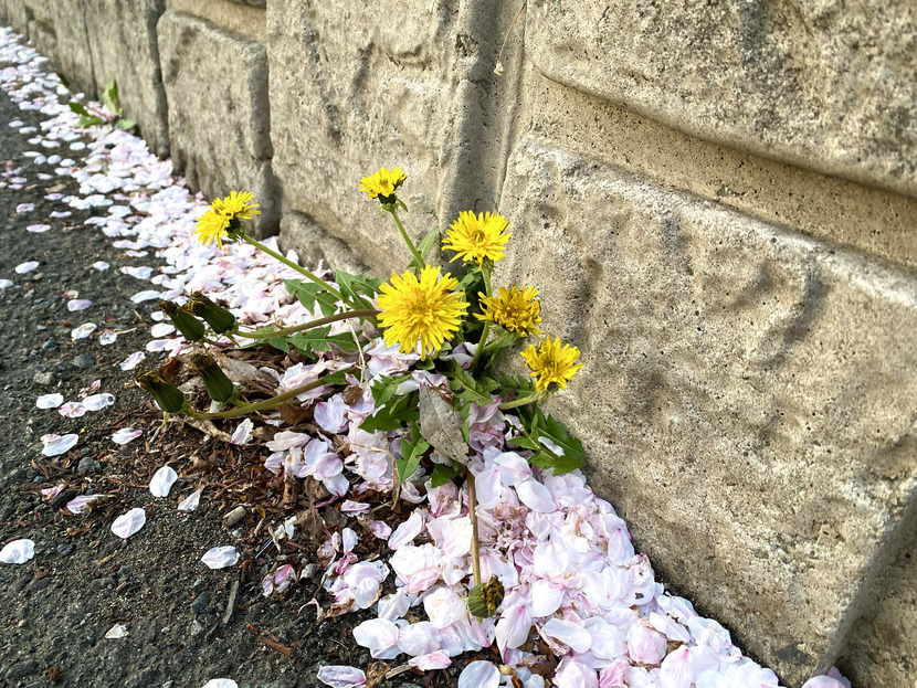 꽃비사이 돌틈 민들레🌼🪨