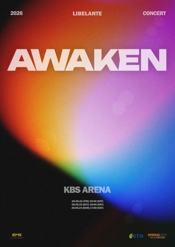 싱글리스트소속사 EMK엔터테인먼트는 2일 리베란테의 단독 콘서트 ‘AWAKEN’이 오는 5월 22일부터 24일까지 3일 동안 서울 KBS 아레나에서 개최된다는 소식과 함께 티저 포스터를 공개하며 관객과의 특별한 만남을 예고했다.