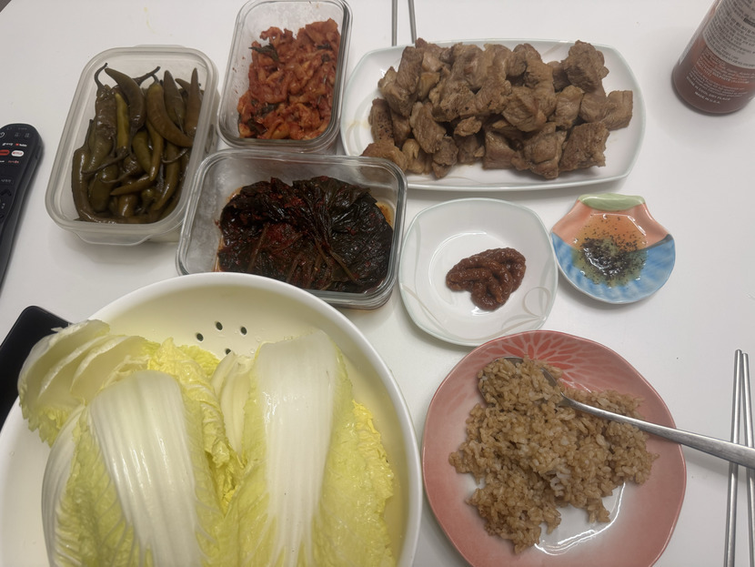 목살스테이크 수비드로 굽굽해서 알배추랑 냠냠🥩🥗
