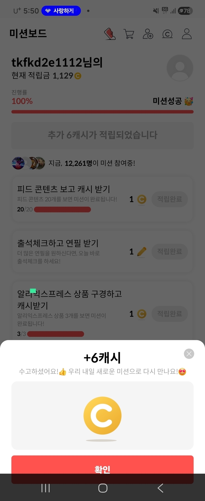 미션성공_6캐시 획득