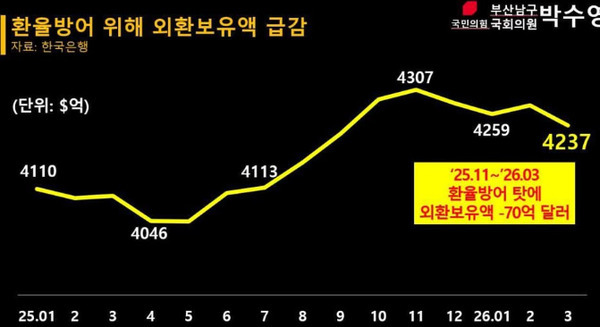 이재명 정부가 환율 방어에 쓴 70억 달러는 우리 돈으로 11조원 가까이 된다. 이번 '전쟁(매표) 추경' 26조 2000억원의 40%에 달한다.