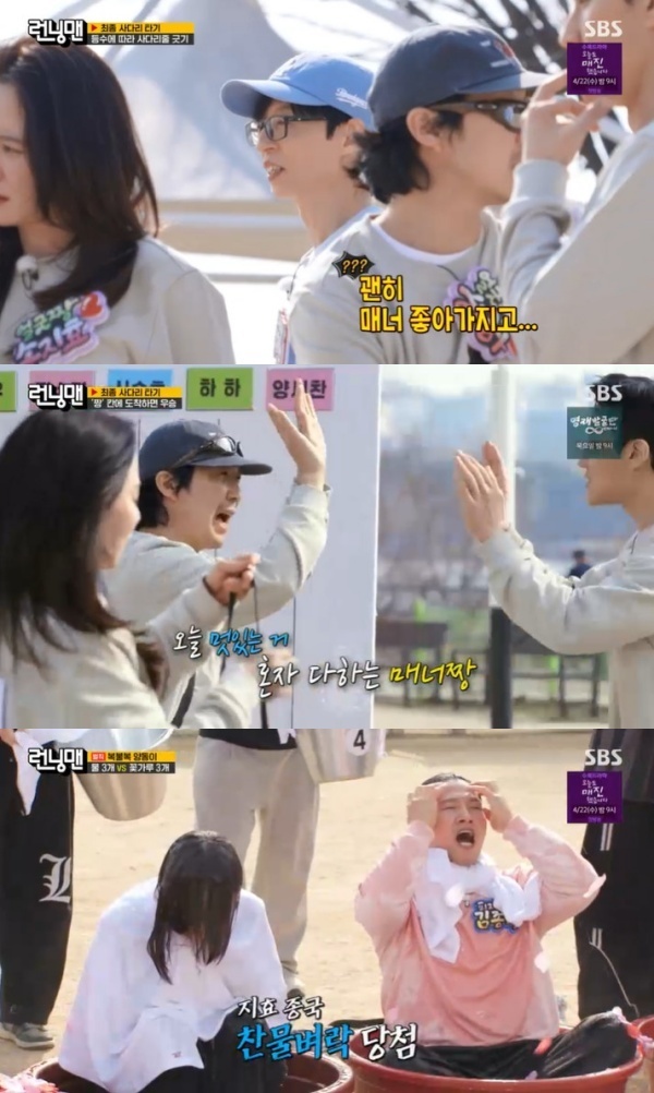 런닝맨 하하 매너짱, 송지효 김종국 지석진 최종 벌칙