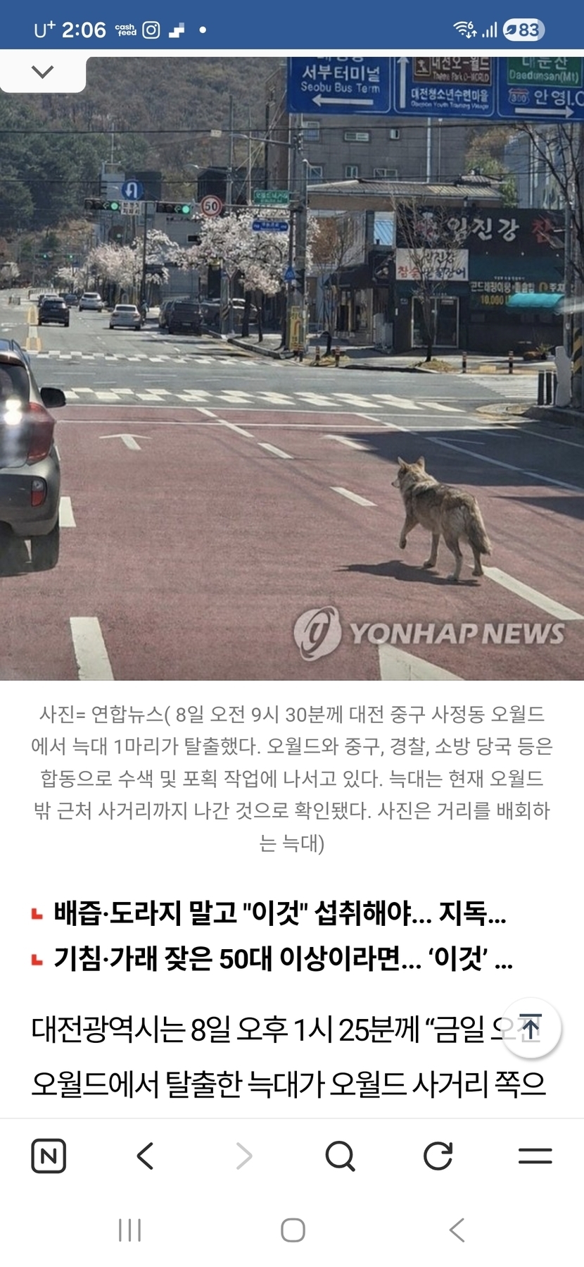 대전 오월드에서 늑대가 탈출로 위험하네
