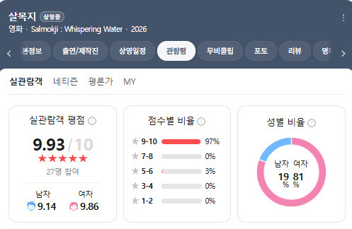 살목지 개봉 첫날 예매 1위, 평점 9.93점 호평