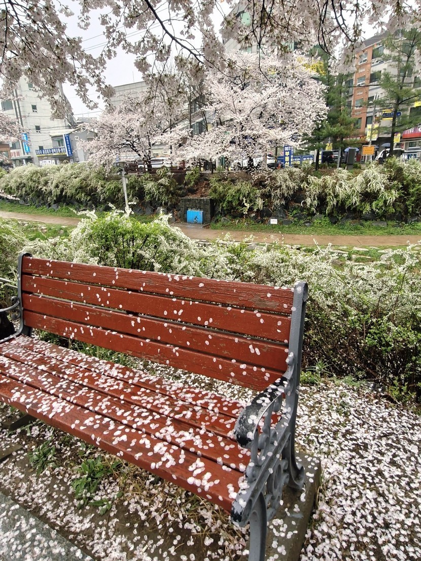 비가 와 벚꽃잎이 많이 떨어졌네요.
