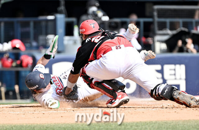 2회 두 번째 타석에서는 헛스윙 삼진으로 물러났지만 2-2로 맞선 5회 선두타자로 나와 2루타를 뽑아 공격 기회를 만들었다. 이어 박지훈의 희생번트로 3루로 진루한 박찬호는 박준순 타석에 나온 3루수 야수 선택 때 과감하게 홈을 파고 들었다. 3루수 김도영이 타구를 잡은 뒤 바로 홈으로 뿌렸지만 박찬호의 손이 더 빨랐다. 몸을 비틀어 왼손을 빼고 오른손으로 홈플레이트를 터치했다. 일명 스위밍 슬라이딩이다. 포수 한준수가 글러브를 뻗었지만 박찬호의 몸에 닿지 않았다. 원심은 아웃이었지만 비디오판독 끝에 세이프로 번복됐다. 이후 김민석의 적시타가 더해져 점수차를 벌렸다.