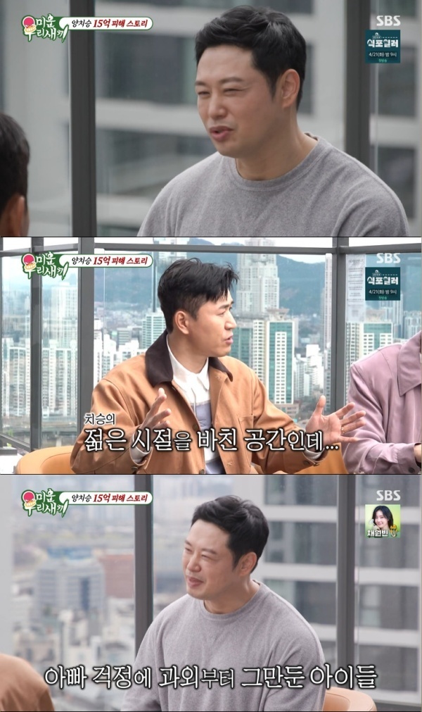 이에 김종민은 "너무 억울한데 이거"라며 양치승의 사연에 분노했고 양치승은 "50이 넘으면 안정적으로 살아야겠다하는데 다시 처음부터 시작하는 느낌"이라고 심정을 전했다.