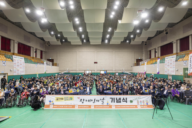 칠곡군장애인단체연합회는 지난 18일 칠곡국민체육센터에서 한영희 칠곡부군수와 기관·단체장, 장애인단체 및 시설 관계자, 회원, 가족, 자원봉사자 등 700여명이 참석한 가운데 \'제11회 칠곡군 장애인의 날 기념식\'을 성황리에 개최했다.