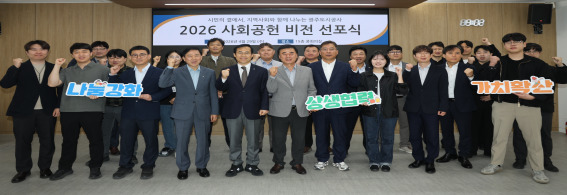 광주광역시도시공사는 29일 본사 15층 중회의실에서 ‘2026년 사회공헌 종합계획 비전 선포식’을 개최하고, 취약계층을 대상으로 한 밀착형 돌봄 체계 구축과 지속가능한 사회공헌 추진 방향을 공개했다.