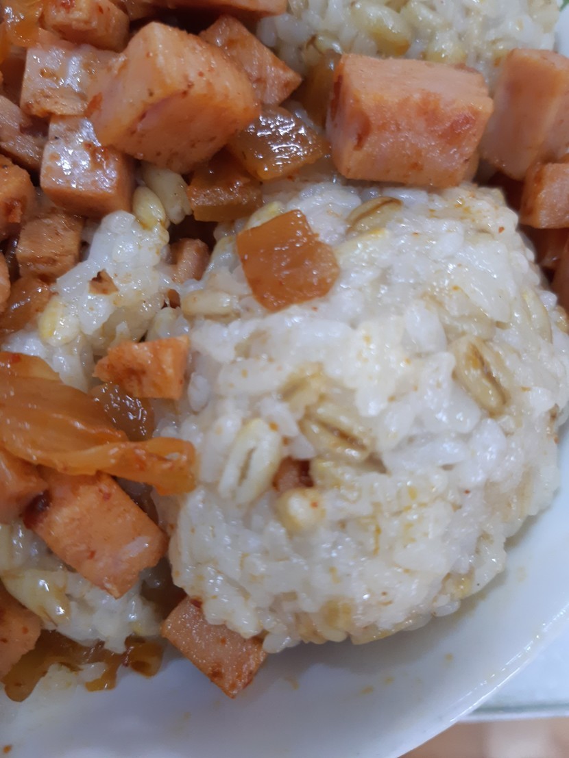 20.07.05 164 읽음 초보용 햄김치주먹밥 🍙 지인 🎈 구독하기 13 17 콘텐츠의 수익 8 오늘은 햄김치주먹밥 만들어 볼꺼에요 !! 준비물 : 김치 , 햄 , 밥 , 참기름 등 ( 추가로 다른거 넣어도 됨 )긴말말고 시작 !!일단 햄 깍뚝썰기 , 김치 쫑쫑 다지기 !! 후라이팬에다가 구워주세요 - 노릇노릇하겡그리고 밥을 손 위에 크게 편 뒤 안에 김치햄을 넣고 싸주세요 . 꾹꾹 담기 !!쫌 김치햄이 많아서 위에 토핑처럼 뿌렸거든요 .. 근데 너무 충격적비주얼이라 차마 이정도만 .. 보여드릴게요 ㅠㅜ 아 !! 맞다 - 밥에 참기름도 섞어주세요 .. 그럼 꼬소해용 ~ 그래도 맛은 성공적 !! 맛있게 만들어보세요 , 좋아요 하고 구독해주시면 당신님 캐시에도 놀러가용 !! 17 0 / 300 입력