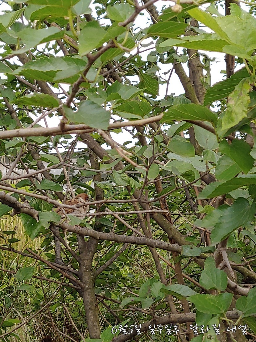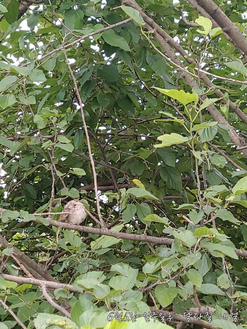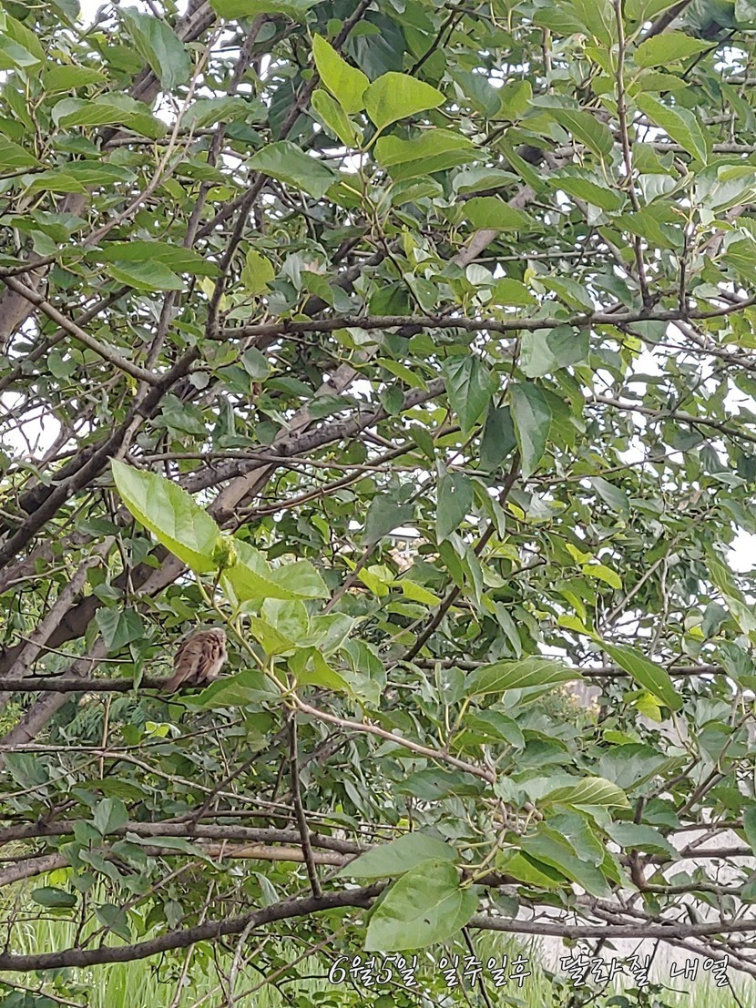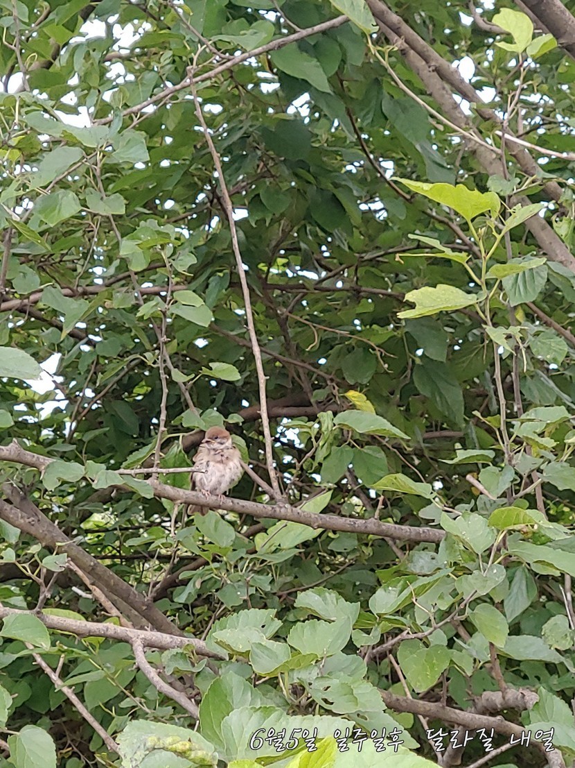 오산천 에서 우연히 뽕나무의 안전 참새 한 마리 모탤 삼아서 한 컷