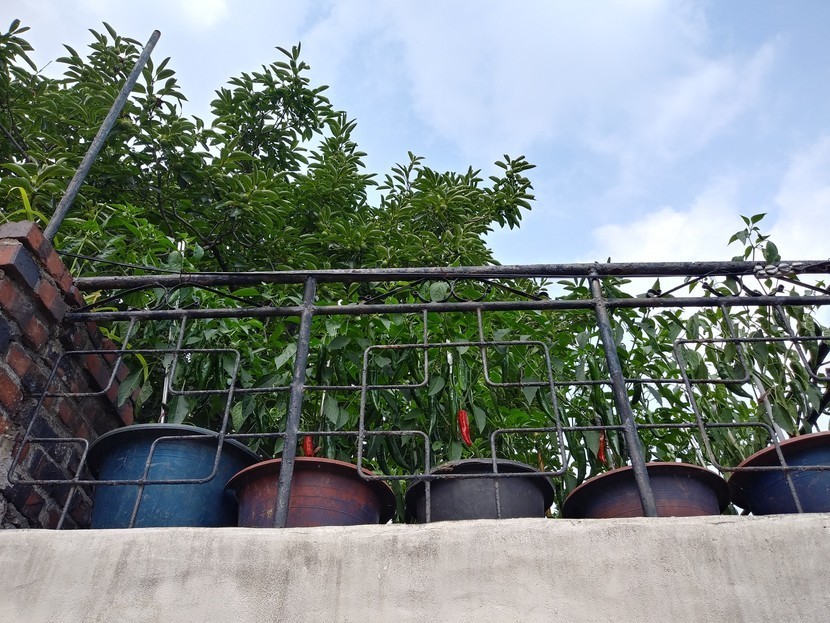 맑고 높고 푸른하늘과 빨간 초록고추의 어울림