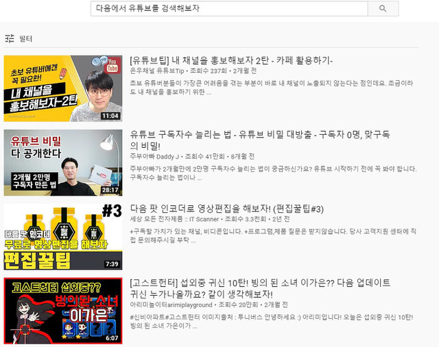 다음에서 유튜브를 검색해보자