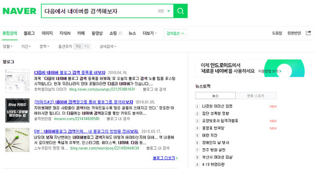 응용사례 1. 다음에서 네이버 검색을 이용해보자