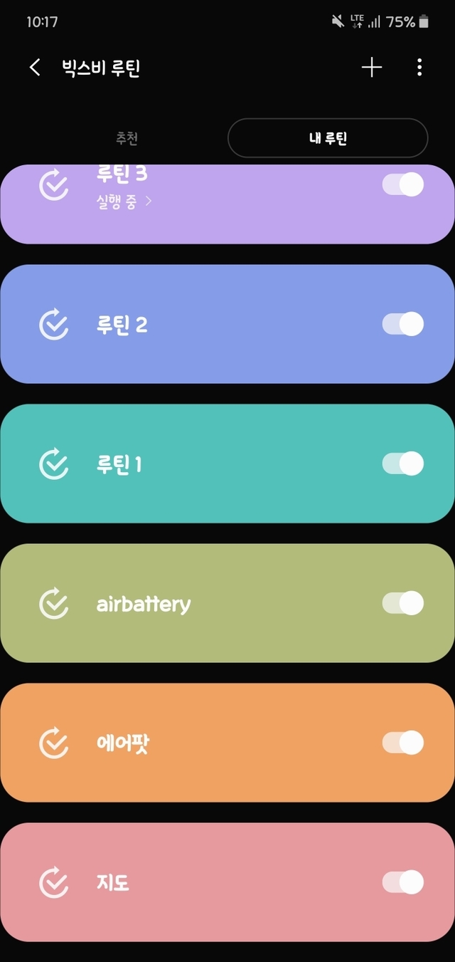 이전기기(아마 s8이후...? 확인바랍니다)는 굿락 어플에 루틴이 있습니다