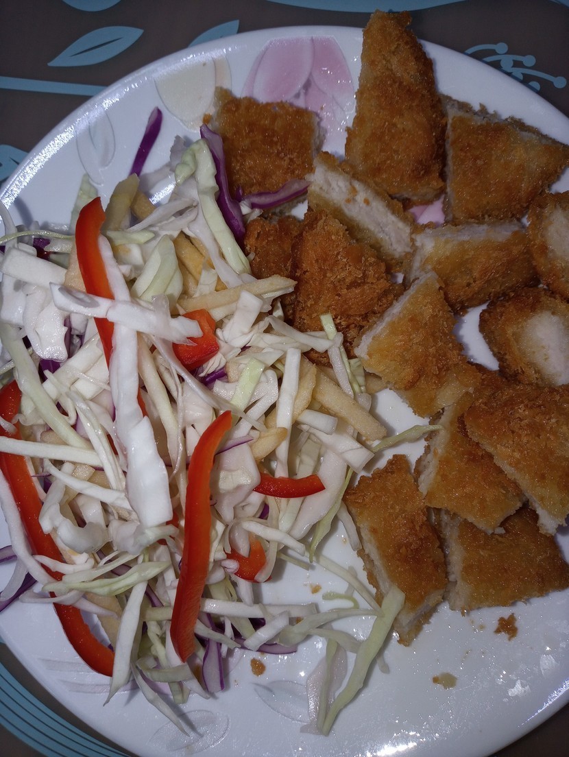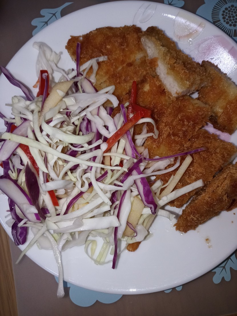 20.08.03 162 읽음 야채와 돈까스 🔮🔮나비란🔮🔮 구독하기 19 23 콘텐츠의 수익 18 시중에 판매하는 제품 돈까스 후라이판에 기름조금 넣고 약불에데우기만 하고 보라와흰 양배추 채썰고사과 한쪽채치고 홍파프리카채쳐 마요네즈와 케첩 살짝 뿌려오뚜기 돈까스 소스 약간 찍어 먹었네요일단 맛은 별 네개 23 0 / 300 입력