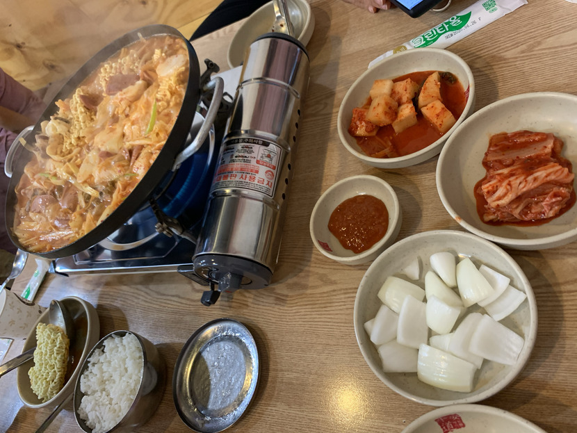 점심에 부대찌개 먹었어요.