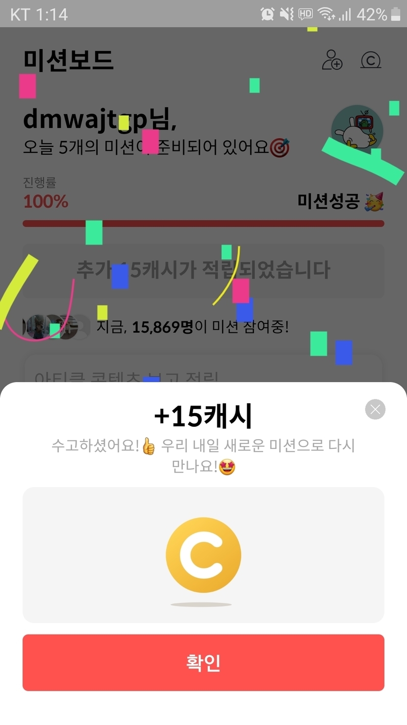 15캐시 받았어요