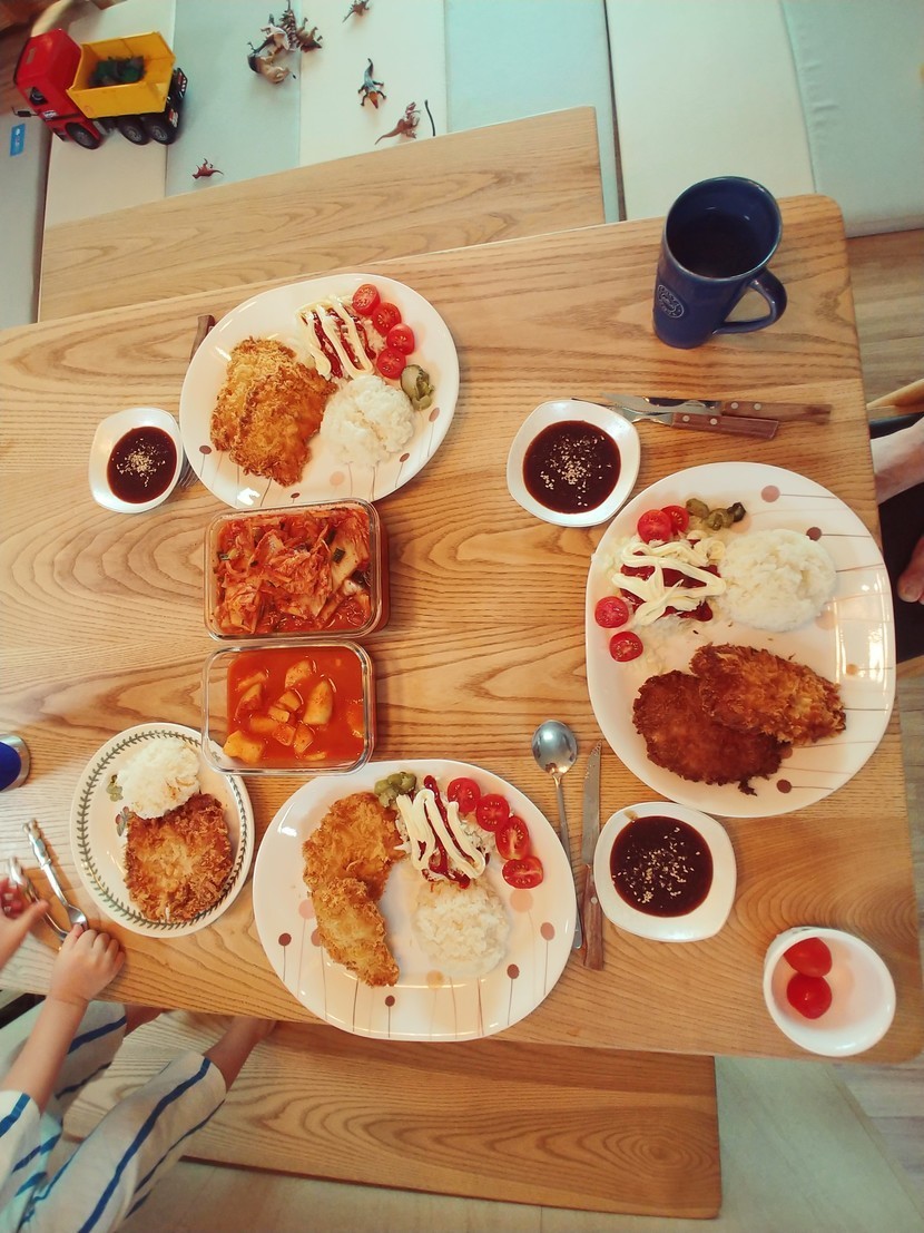 집에서 만든 경양식돈까스~ 이마트에서 돈까스사서 기름한통써서 했네요 ㅎㅎ