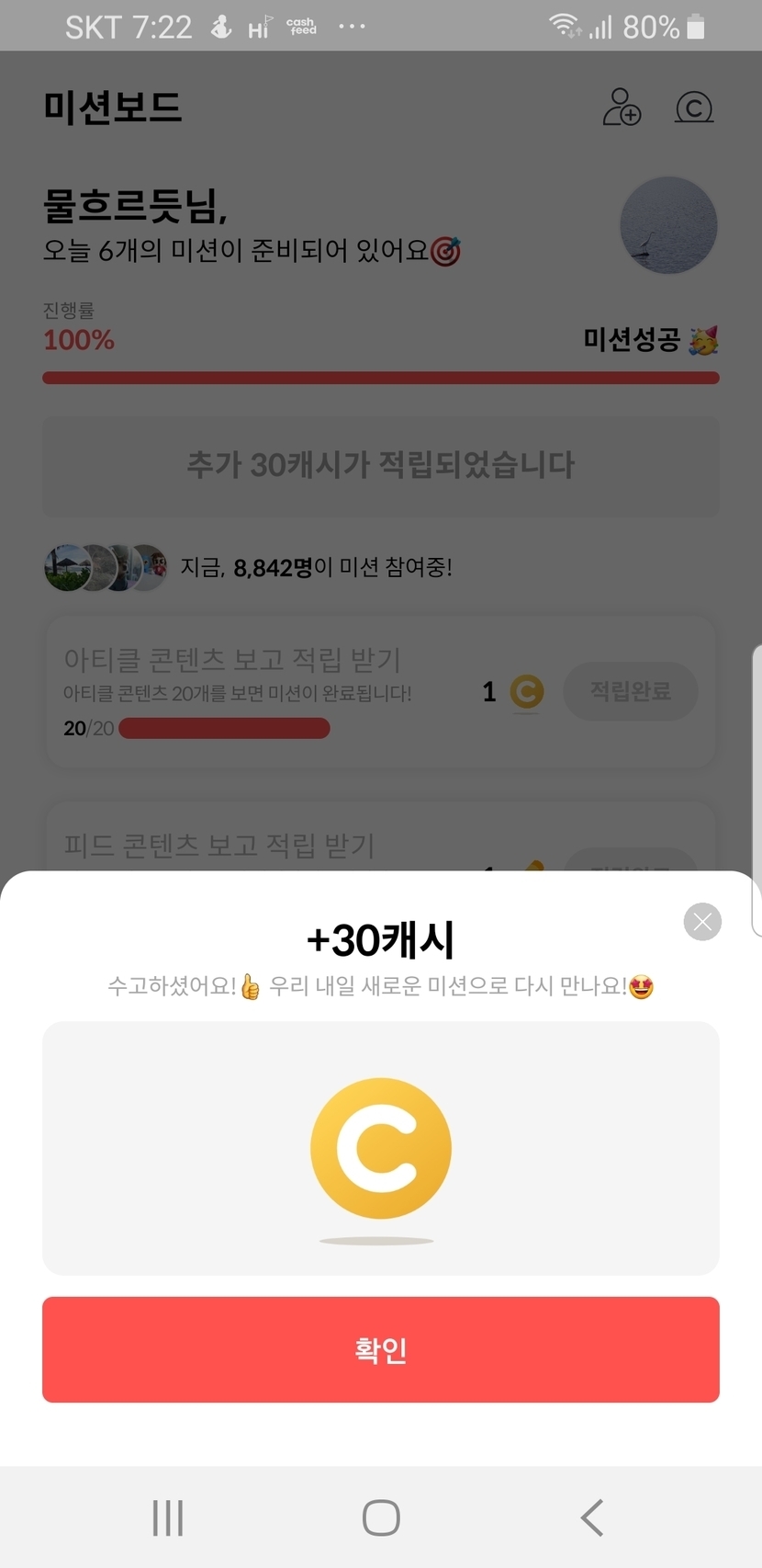 미션보드 +캐시