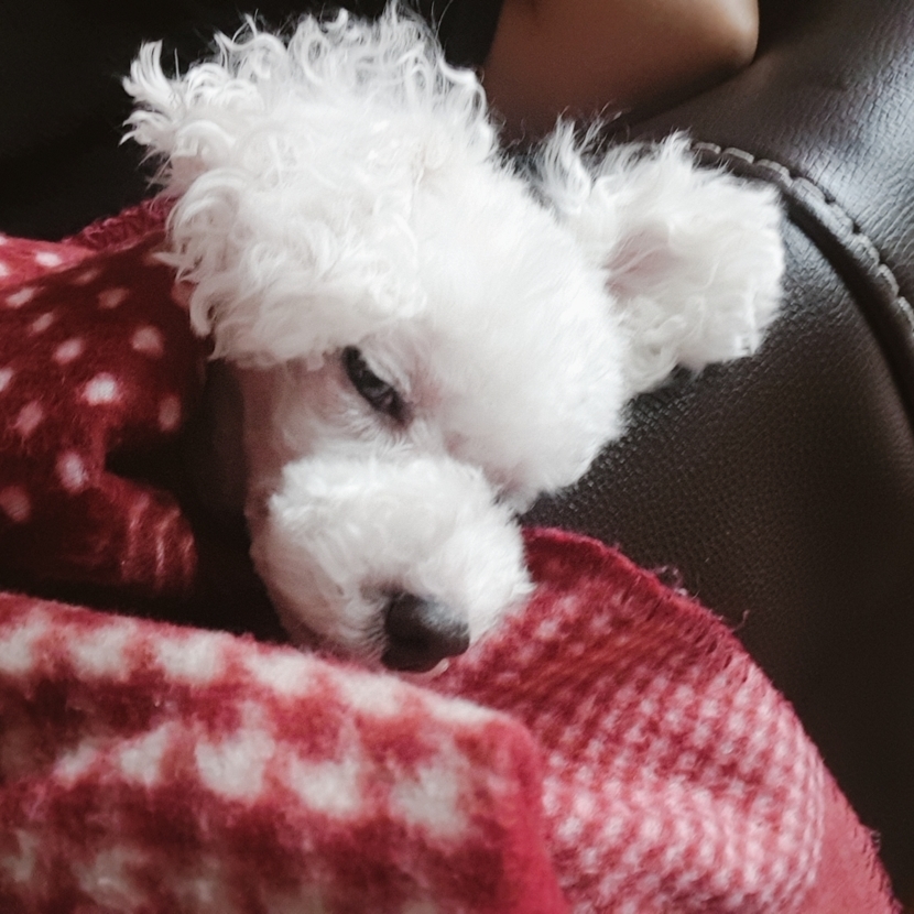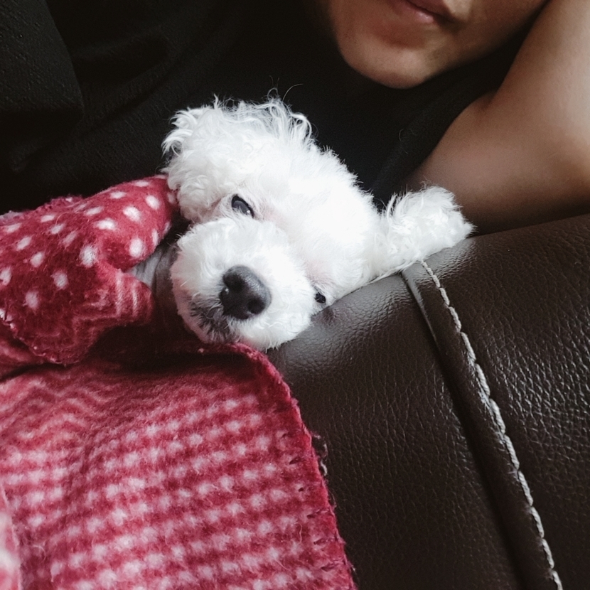이불속을 파고들어 품에 안겨 잘려는댕댕이