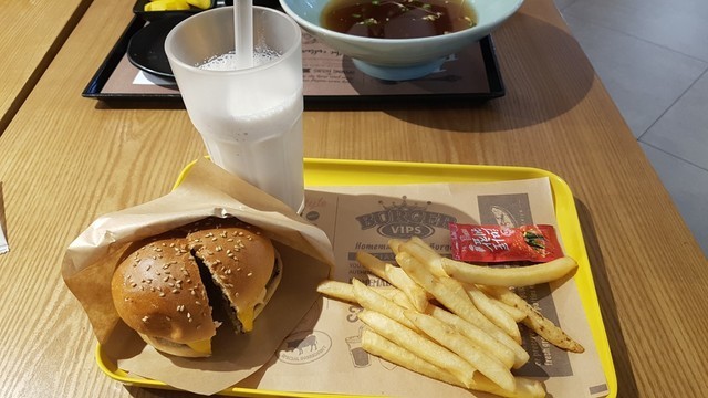 빕스버거의 기본 메뉴인 빕스버거랑 미숫가루 세트를 주문했는데 밥을 먹은 상태임에도 맛있게 먹었다.