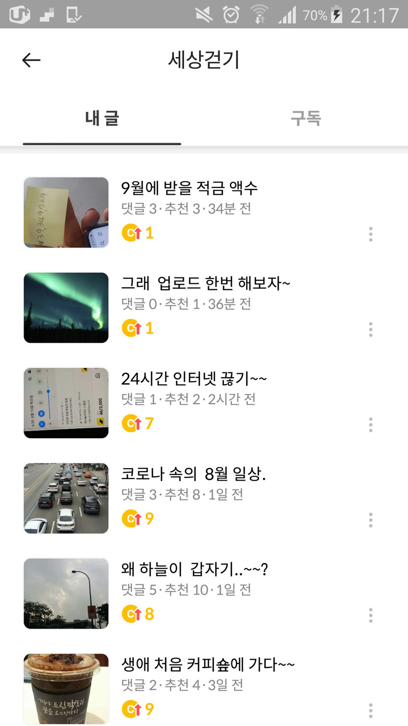 20.08.13 53 읽음 미션업로드 또 에러났네요. ㅠ 세상걷기(답방가요) 구독하기 3 4 콘텐츠의 수익 7 글을 3개를 업로드 해도미션 클리어드 메세지가 안 뜨네요.벌써 3번째 에러네요. ㅠㅠ 4 0 / 300 입력