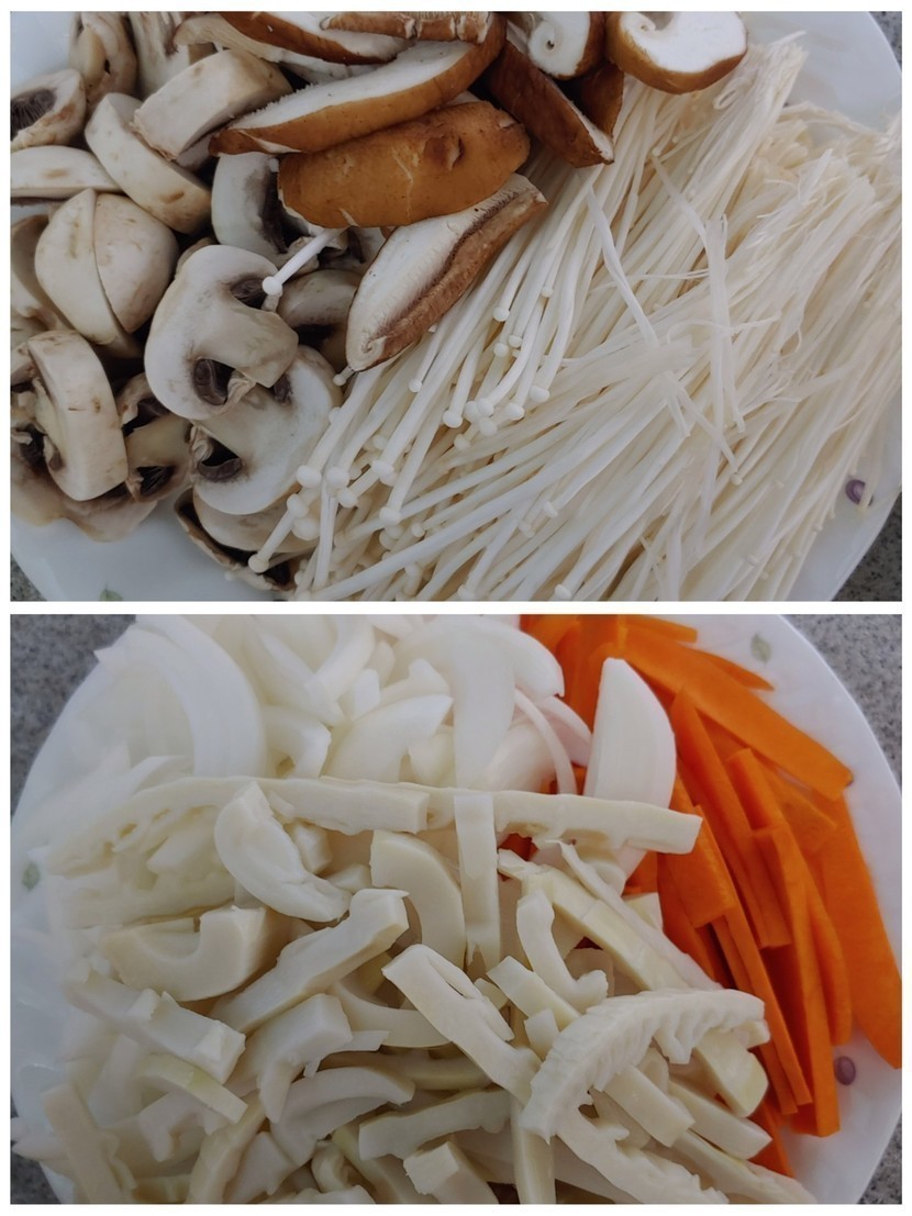양송이..표고보섯..팽이버섯...썰어서 준비..