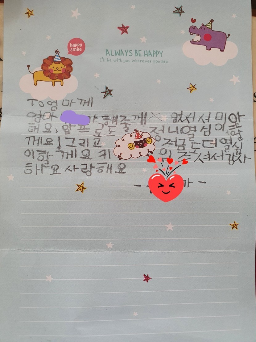 20.08.17 114 읽음 딸의 편지ㅎ~ 귀엽게 봐주세요~ jhseg6332 구독하기 8 9 콘텐츠의 수익 7 몇일전에 초등1학년생인 딸아이가 집에 편지지가 있는걸보고 저한테 편지를 썼네요ㅎ한편으로 감동도 되는데 웃기기도 하네요ㅎ언니랑 보면서 한참 웃었네요고맙고 사랑한다고 말 해줬네요~ 그랬더니 엄마 내가 최고지 하네요ㅎ 늦둥이 키우는거 힘들긴 하지만 보람도 많네요ㅎ더운 날 건강조심 하시고 이또한 지나가리란 말처럼 머지 않아서 가을이 올거에요물론 코로나는 답이 없을것 같은데 모두 힘내자구요~ 화이팅!! 맛점 하세요 9 0 / 300 입력