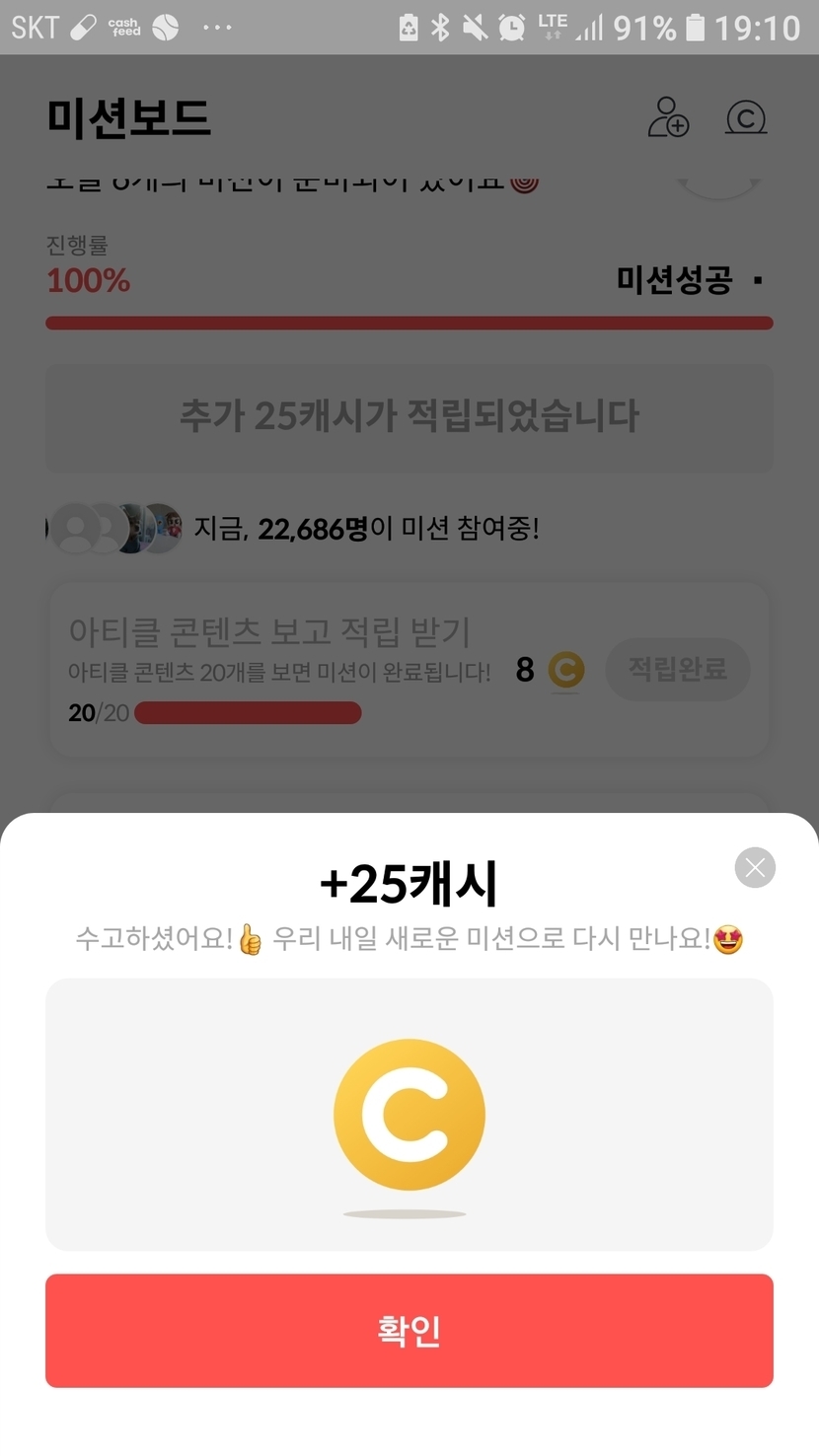 미션보드 간만에 성공