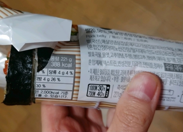 편의점특유의 불고기맛이 느껴지는 전형적인 편의점김밥맛임