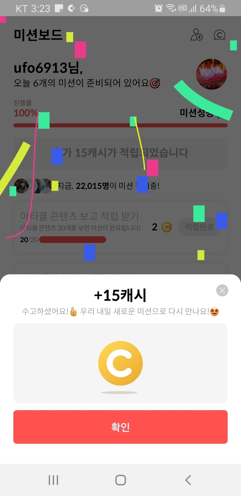 간만에 나온 두자리수 미션보상
