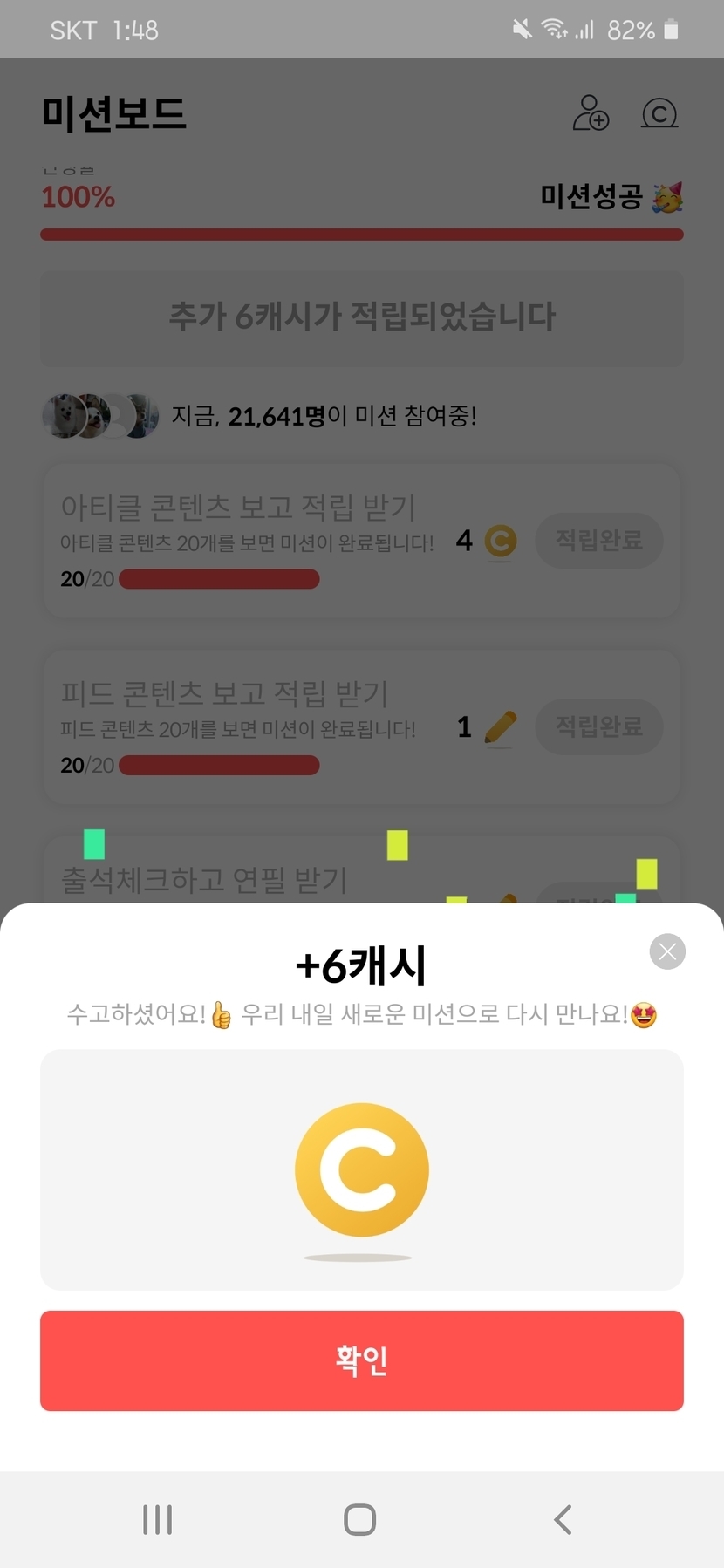 20.08.22 160 읽음 오늘의 미션 인증... 겨울나무 구독하기 10 11 콘텐츠의 수익 8 오늘의 미션 완료했어요. 6캐시...짜다짜..ㅠ 그래도 다른 세부미션까지 합하면 12캐시니까...그리고스텝업 미션은 14캐시니까..하고 아쉬움을 달래봅니다. 11 0 / 300 입력