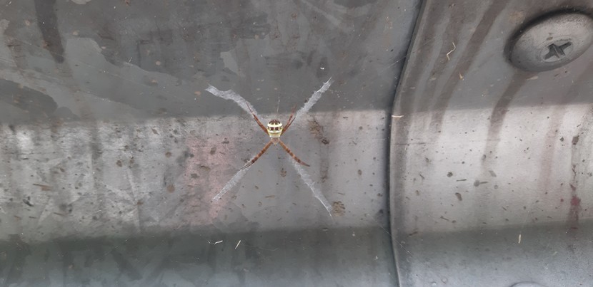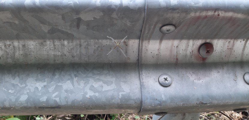 코로나와 더위를 피해찾은 한적한시골 도로가드레일에서도 거미는 있었다