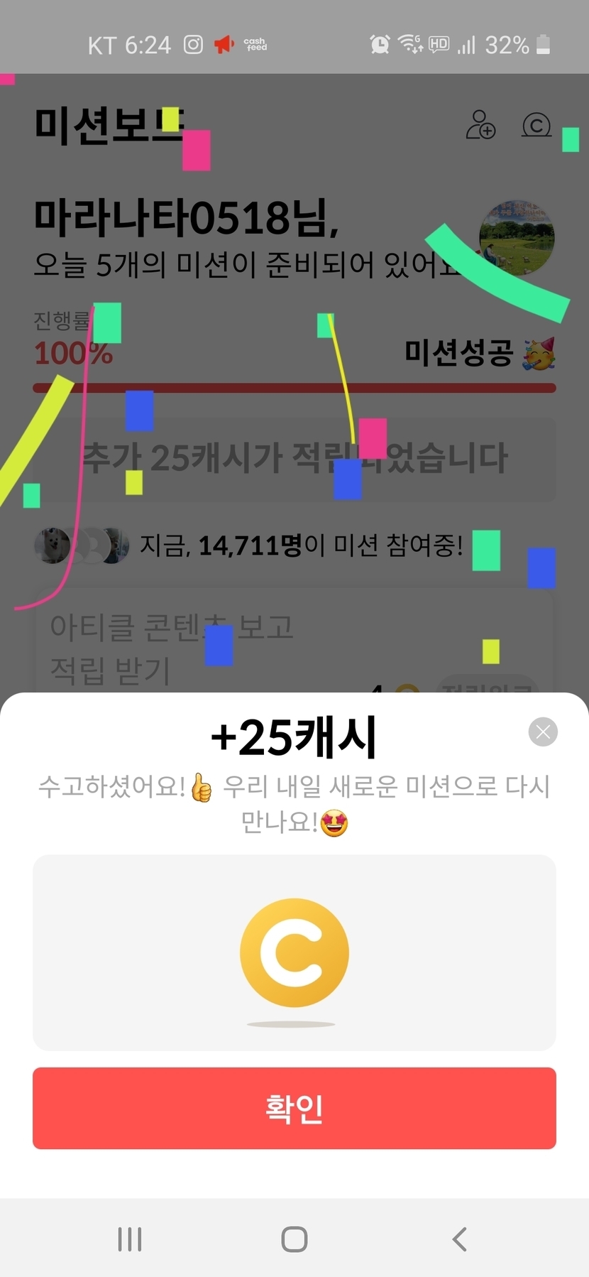 미션보드. 오늘은 25. 어제는 6이던가 그랬네요ㅎㅎ