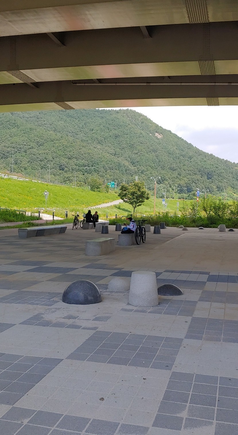 고가차도 밑은 잔차 정류장인 휴식 공간이다